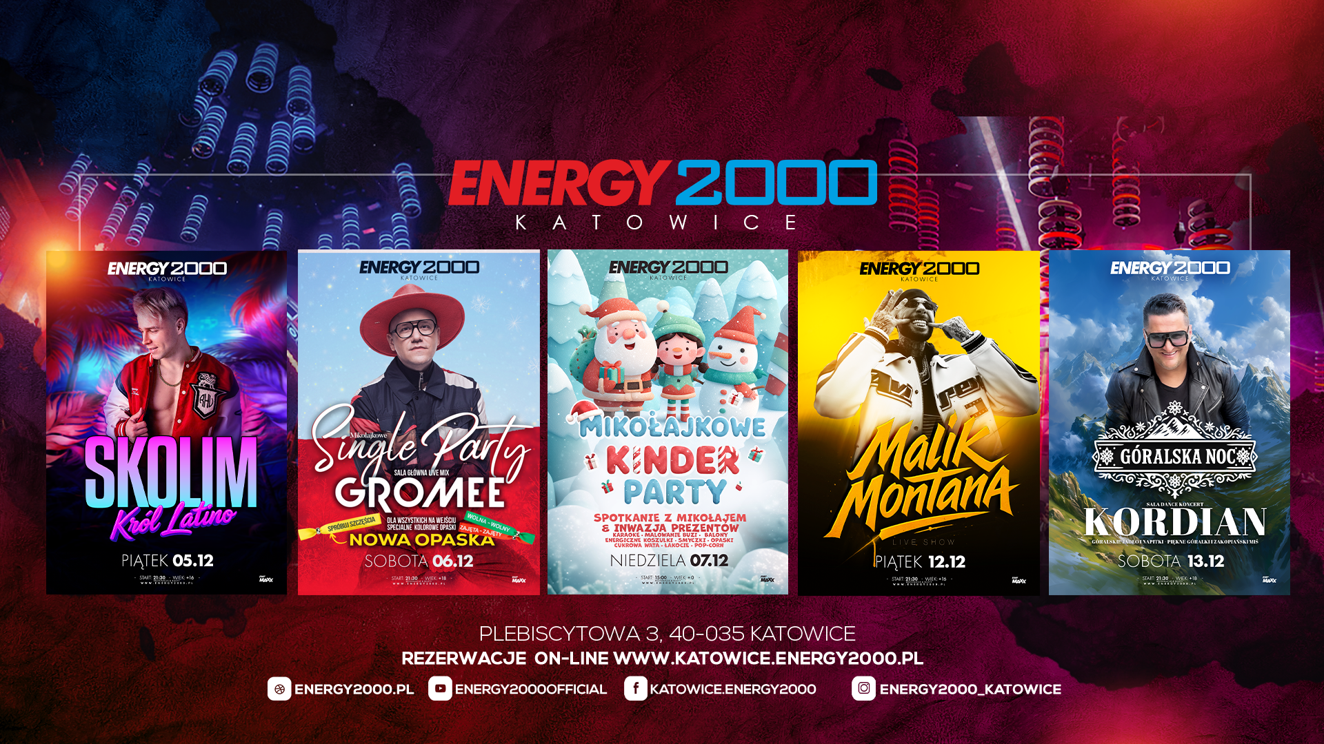 Energy 2000 to samo centrum miasta – znajdziesz nas bez trudu, a z dojazdem i powrotem nie będziesz mieć najmniejszego problemu. Ulica Plebiscytowa, kino Capitol, pierwsze w mieście. A teraz pierwszy klub i dla wielu stały punkt weekendowej zabawy. Dołącz do nich, przekonaj się, dlaczego tak wielu ludzi regularnie u nas bywa. Bo nie chodzi tylko o imprezę i muzykę, ale o energię, którą poczujesz już za progiem. Plany na wieczór i na noc? Energy 2000. I wszystko jasne.
